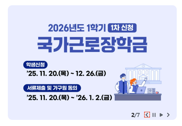 - ① 신청기간 메모: 2026년 1학기 국가장학금 1차 신청기간을 캘린더에 등록